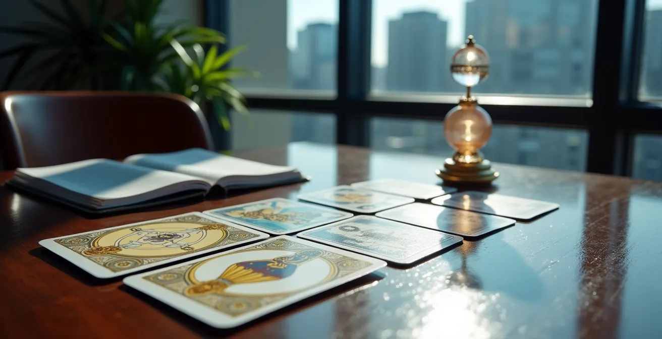 Le problème n’est donc pas l’absence d’intuition, mais notre incapacité à la décoder et à lui faire confiance. Lorsqu’un dirigeant est face à plusieurs options qui semblent toutes logiques sur le papier, le blocage vient souvent d’un signal intuitif qui contredit l’analyse, sans que l’on sache pourquoi. C’est là qu’un outil divinatoire peut servir de « traducteur ». Il ne donne pas la réponse, mais propose des scénarios symboliques pour chaque option. Par exemple, pour Camille, une architecte hésitant entre trois orientations, un tirage a permis de mettre en lumière les freins et les leviers d’évolution potentiels pour chaque poste, lui offrant une grille de lecture plus profonde que la simple description de mission.