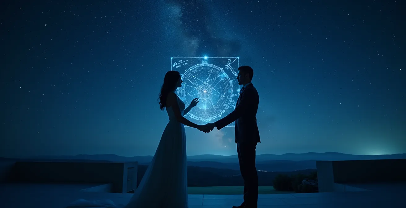 L’astrologie élective ne sert pas uniquement à planifier le futur ; elle permet aussi de décoder le passé pour éclairer le présent. Un domaine fascinant de cette pratique est l’analyse du « thème de rencontre » : la carte du ciel dressée pour le moment et le lieu d’un premier rendez-vous, d’une première rencontre significative ou même d’un premier baiser. Ce thème événementiel agit comme le thème natal de la relation elle-même. Il décrit la dynamique fondamentale, le potentiel, les défis et la « mission » de cette histoire d’amour. Son analyse peut révéler des indices précieux sur sa nature et sa possible durée.